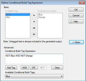 Here you would simply list the tags for the topics and/or content that you did not want included in the output. If a topic had any or all of those tags applied, it would be excluded from the output.