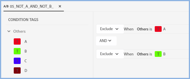 In the New UI (2019 and above) the expressions are created in a different way. You are presented with a list of all the tags on the left and you drag them to the right and select Exclude/Include and AND/OR. Sorry to repeat myself but stick with Exclude.