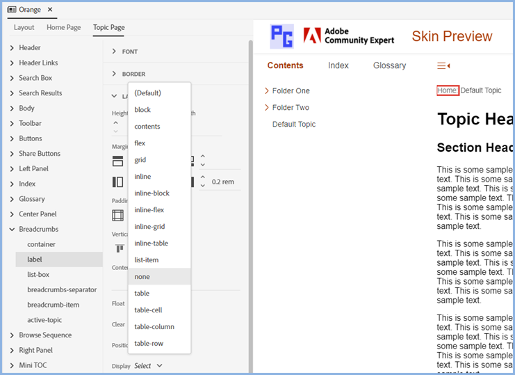 1. If you do not select a master page, the CSS file(s) linked to each topics will apply in the output.