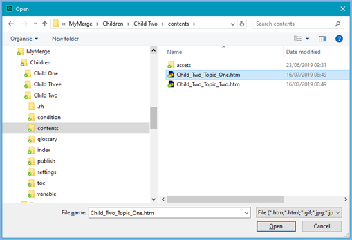 When you have done that, you will see that within the parent output, RoboHelp has created a mergedProjects folder and within that there is a folder for each child.