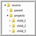 In the demo setup that you can download, you will find a parent project in one folder and three child projects nested in another. Having all the child projects at the same level is key and makes it easy to set up cross project links that will work in the merged output. If the child projects are not at the same level, cross project links will break in the output unless you manually edit them. Who wants to do that?