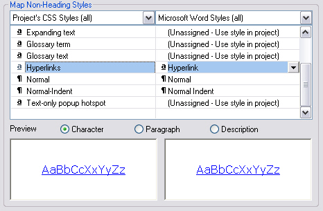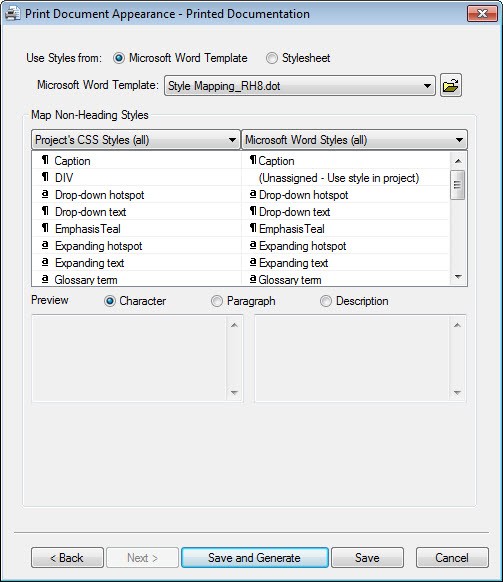 For now we will select the Style Mapping template so that you can see what it produces out of the box. You will see that the Map Non-Heading Styles frame is now enabled. RoboHelp will attempt to work out which styles in your project map to which styles in the template but you can override these choices and set any that RoboHelp cannot figure out.