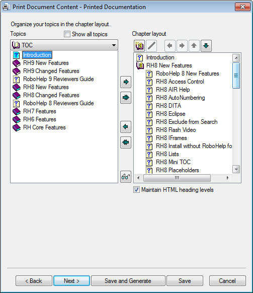 We will accept the default layout, which just leaves the Maintain HTML heading levels field to be set. The chapter (book) will be assigned Heading 1 in your printed output so if the topic also starts with Heading 1, that will get bumped down to Heading 2. That may give you a different output to what you want so if you want the topic to retain its Heading 1, tick this check box.