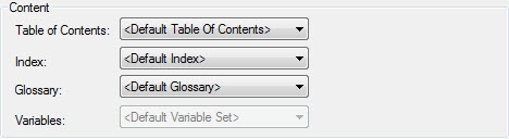 Multiple TOCs, Indexes and Glossaries were introduced in Adobe RoboHelp 7 and Variables were introduced in Adobe RoboHelp 6. Choose the required options here.