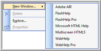 For some reason lost in the mists of time, when you right click to create a new window, RoboHelp has always created a window for the default layout. I have seen many forum posts where someone has created a new window for a CHM and not seen the properties for that type of window. They then had to be advised to change their default layout to Microsoft HTML Help, create the new window and then revert the default.