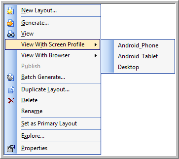 You can create your own layouts using the Screen Layout Editor or you can use one of the supplied layouts, as supplied or edited. For the purpose of this exercise we will use the supplied layouts and use the iPad layout for Android tablets. Editing and creating screen layouts is covered in RH10 Screen Layout Editor.
