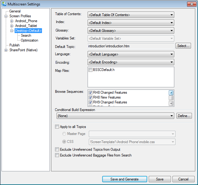 If we did not want to generate an Android phone output, we would simply highlight that on the right and then click Remove Screen Profile(s).