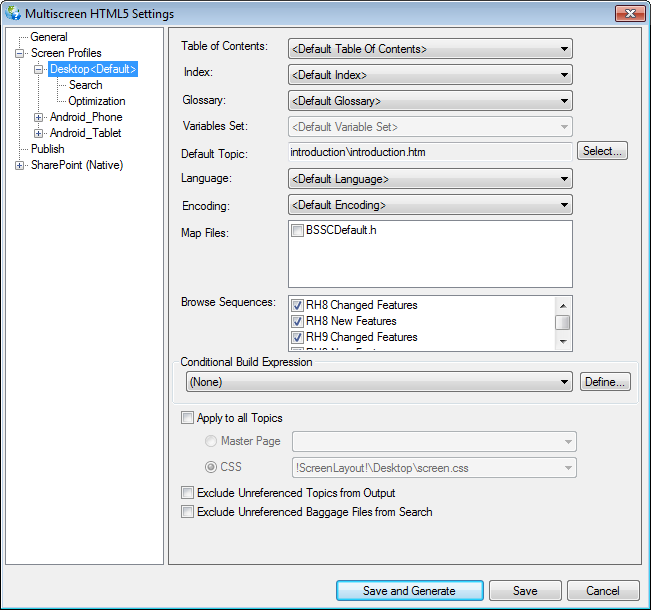 - Screen profiles are required to suit the device(s) your help will be viewed on. Default profiles are supplied that you can use as defined, you can edit those profiles or create new ones to suit your needs. These provide a mechanism by which the help can detect what screen it is to be displayed on and deliver the correct help for that screen and operating system.