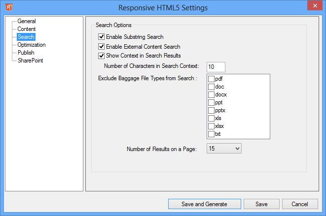 The Search settings are also the same as with WebHelp.