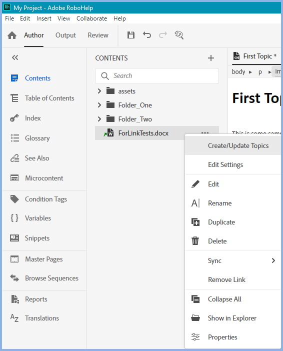 - As you cannot edit Word documents in Adobe RoboHelp, Sync>Project to Source should not be used. You change the topic(s) but next time you Create/Update those changes will be lost. It is not intended that you edit such topics.