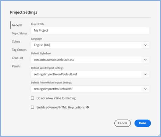 - If you do not create CHM files, you will not need Window Settings that are further down the list.