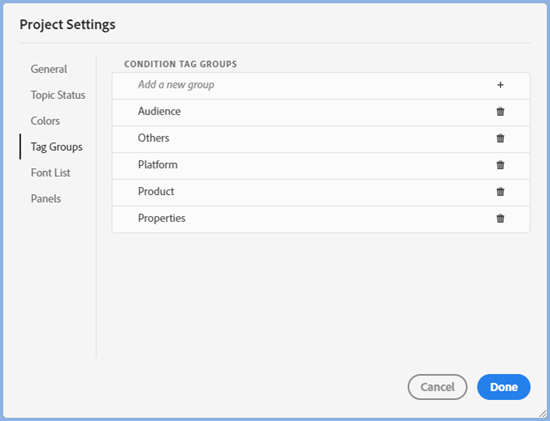 How to use Tag Groups is described in Single Sourcing.