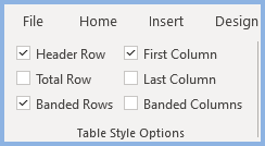 The tables supplied with Word have three Table Style Options check boxes preselected as shown below. Any tables you create and save in Word will start with the same three check boxes selected.