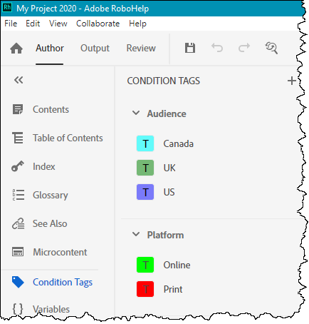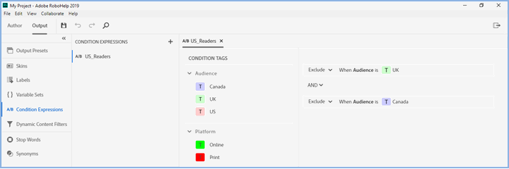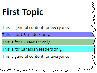 By using different expressions, you can generate different outputs for different audiences, such as in the example above, or you could apply the Print condition tag to images and then exclude the images from online help but include them in Printed Documentation and so on.