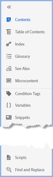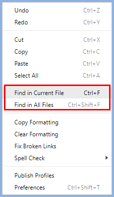 With a topic, a CSS file, a master page or any text based file in the project, clicking Find in Current File or pressing CTRL F will add this to the bottom of the page.