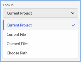 By default the whole project will be searched but you can set a limit. Choose Path will open a dialog to let you choose a folder within your project.