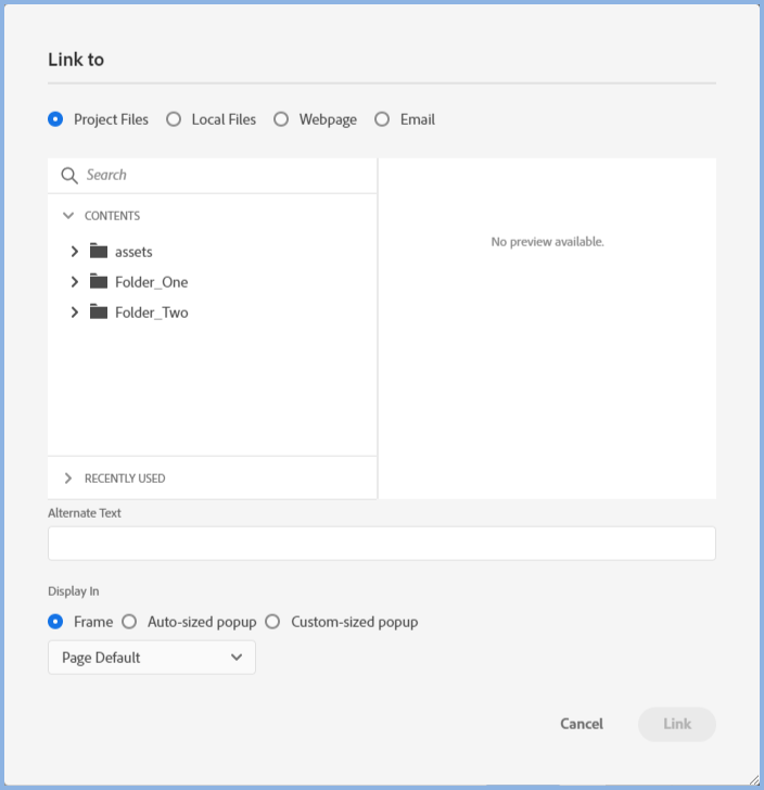 - When you have finished creating your shapes or after you create each shape, select the area and click the Link icon to display this dialog.