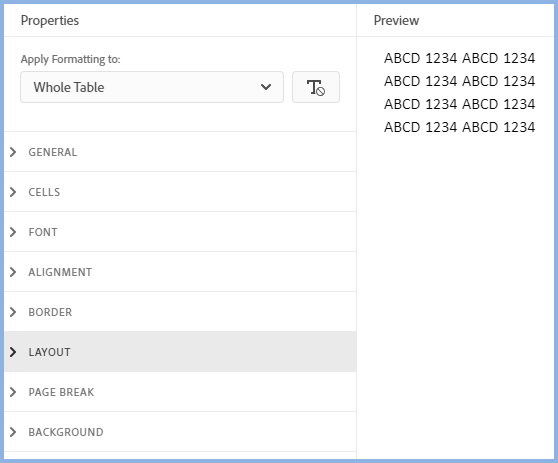 - Generally anything you set here with Whole Table selected will apply to all the cells in the table with the exception of the border. For borders Whole Table means the outer borders of the table, not the individual cells.