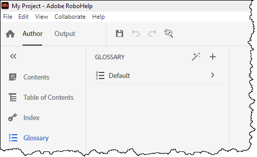 Click the Glossary icon in the Project toolbar and click the + icon to create a glossary.