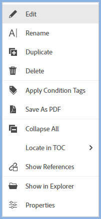 The options will vary according to the file type selected. The menu shown below is for topics.