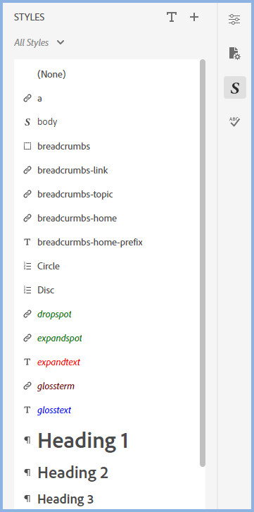 Note that if you select Do Not Allow Inline Formatting in Project Settings, Content Properties panel on the right toolbar will not show many of the options otherwise available.