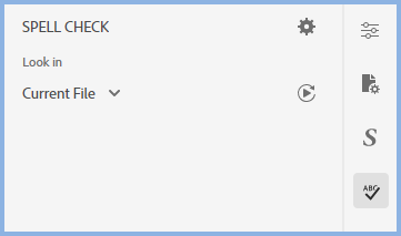 Click the Spell Check icon to see this dialog. Select where to Look In and then click the Run Spell Check icon alongside. Your general spell check properties can be edited by clicking the cog icon. |