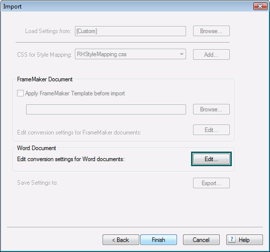 This field will be used when importing FrameMaker documents that also use this screen. Ignore it when importing from Word. |