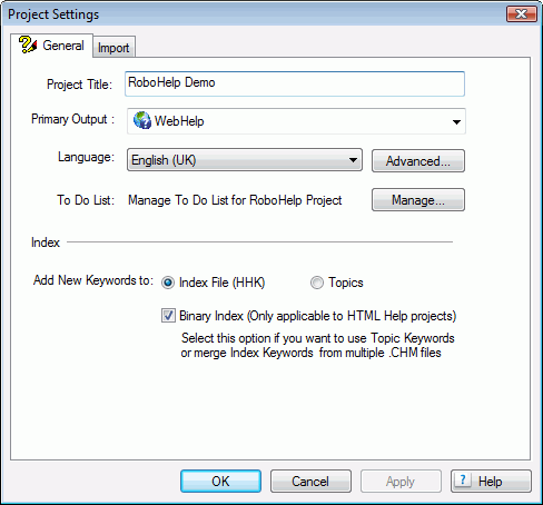 Click File > Project Settings to display this dialog.