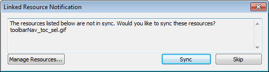 The image gets copied into the root of your project as is it needed when you create an output but a link is maintained with the copy in Resource Manager. If the linked image changes, the image icon changes and a warning is given. Either the project image can be updated or the link can be broken. I chose Sync and the image above was updated.