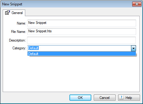 The number of snippets used by some authors proved to be beyond the wildest expectations of Adobe and some organisation was called for. Categories have been added in RoboHelp 9 to address that problem. You might struggle though to see how to add categories. There is a dropdown in the dialog in which you create a new snippet that just shows Default, where do you add new ones. Just type it into the Category field!